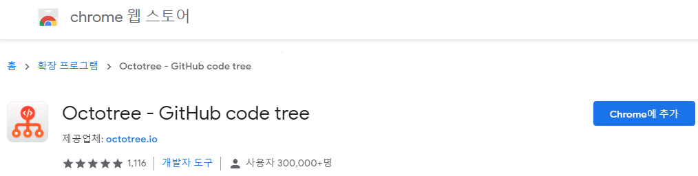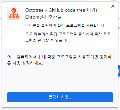 octotree는 위의 그림과 같이 github에서 프로젝트의 내부 구조를 파악하기 쉽게 해주는 확장 프로그램입니다.