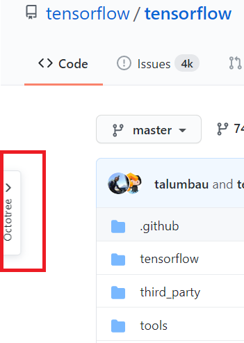 그러면 왼쪽에 위의 그림과 같이 "Octotree" 버튼이 생긴 것이 보입니다.